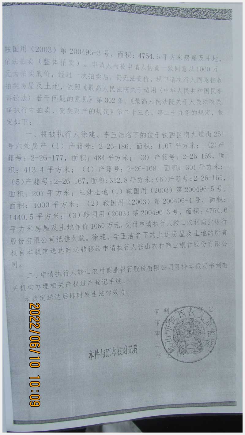 名稱:鞍山市鐵西區(qū)南九道街251號(hào)房產(chǎn)及土地使用權(quán) 面積:房產(chǎn):2865.2㎡、土地:7195.1㎡ 瀏覽次數(shù):1027
