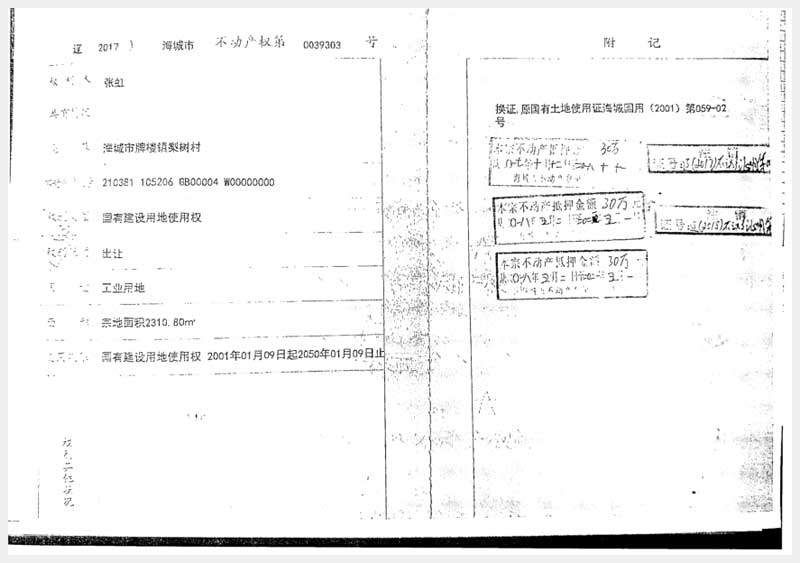 194號 海城市牌樓鎮(zhèn)工業(yè)區(qū)房產(chǎn)及梨樹村土地使用權(quán)