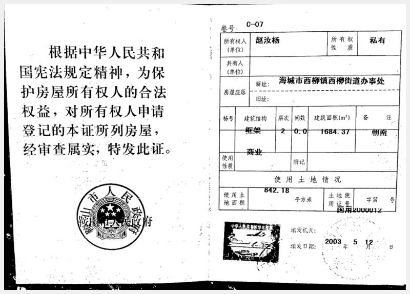 名稱(chēng):海城市西柳鎮(zhèn)西柳辦事處房產(chǎn) 面積:1684.37㎡ 瀏覽次數(shù):1158