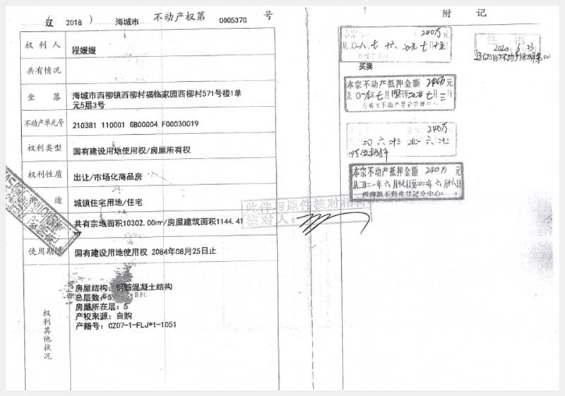 名稱:海城市西柳鎮(zhèn)西柳村福臨家園西柳村571號(hào)樓1單元5層3號(hào)房產(chǎn) 面積:1144.41㎡ 瀏覽次數(shù):1091