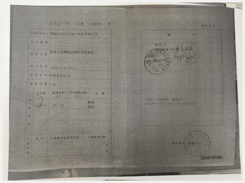 地址:海城市西柳鎮(zhèn)西柳街道辦事處 標(biāo)的號(hào):222