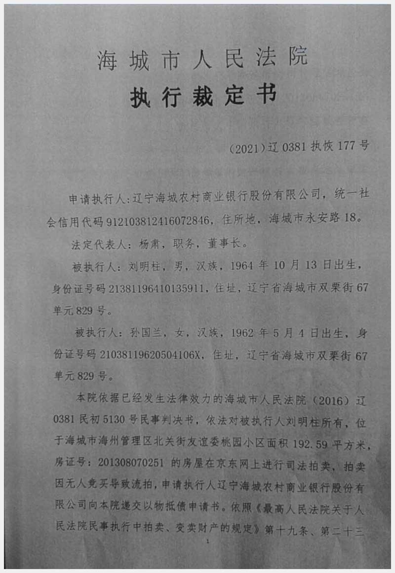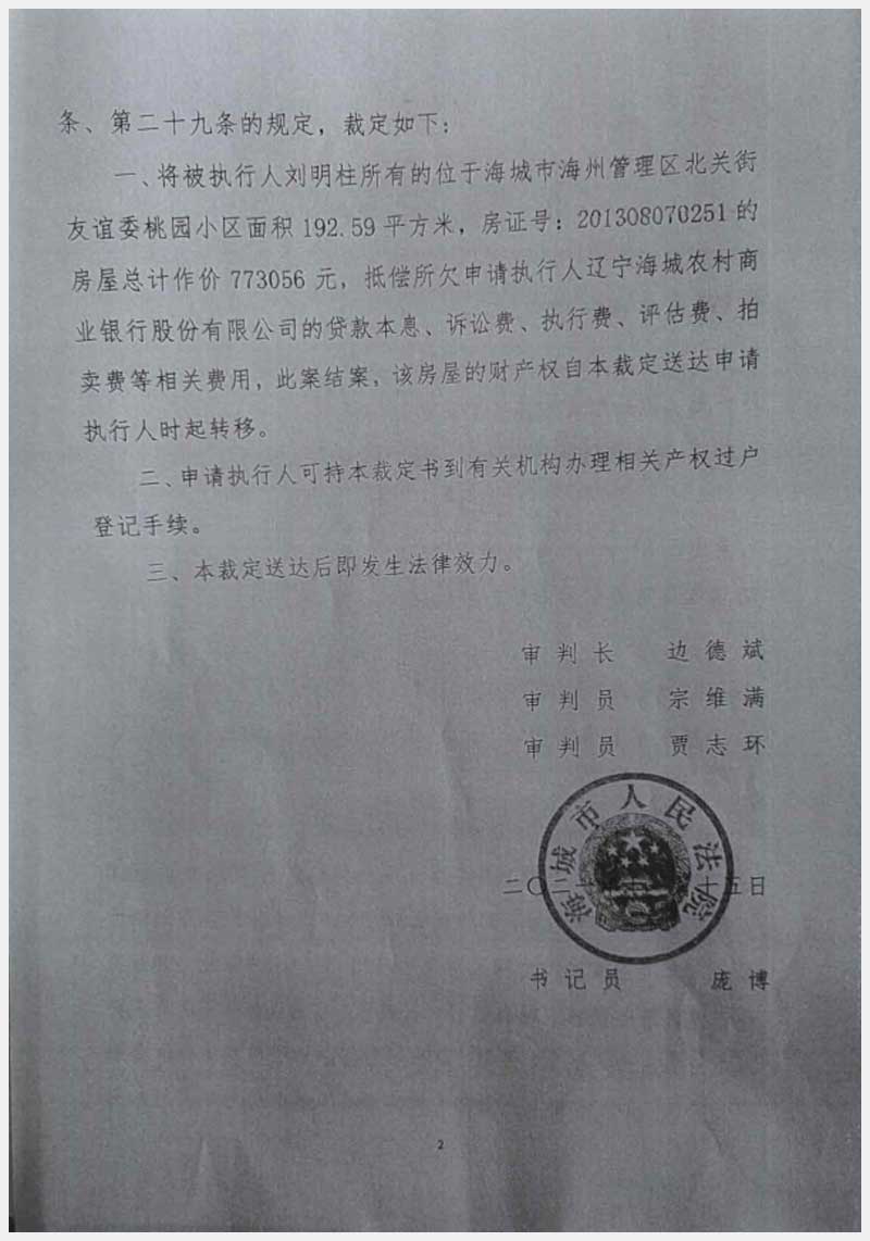 地址:海城市海州管理區(qū)北關(guān)街友誼委桃園小區(qū) 標(biāo)的號(hào):228