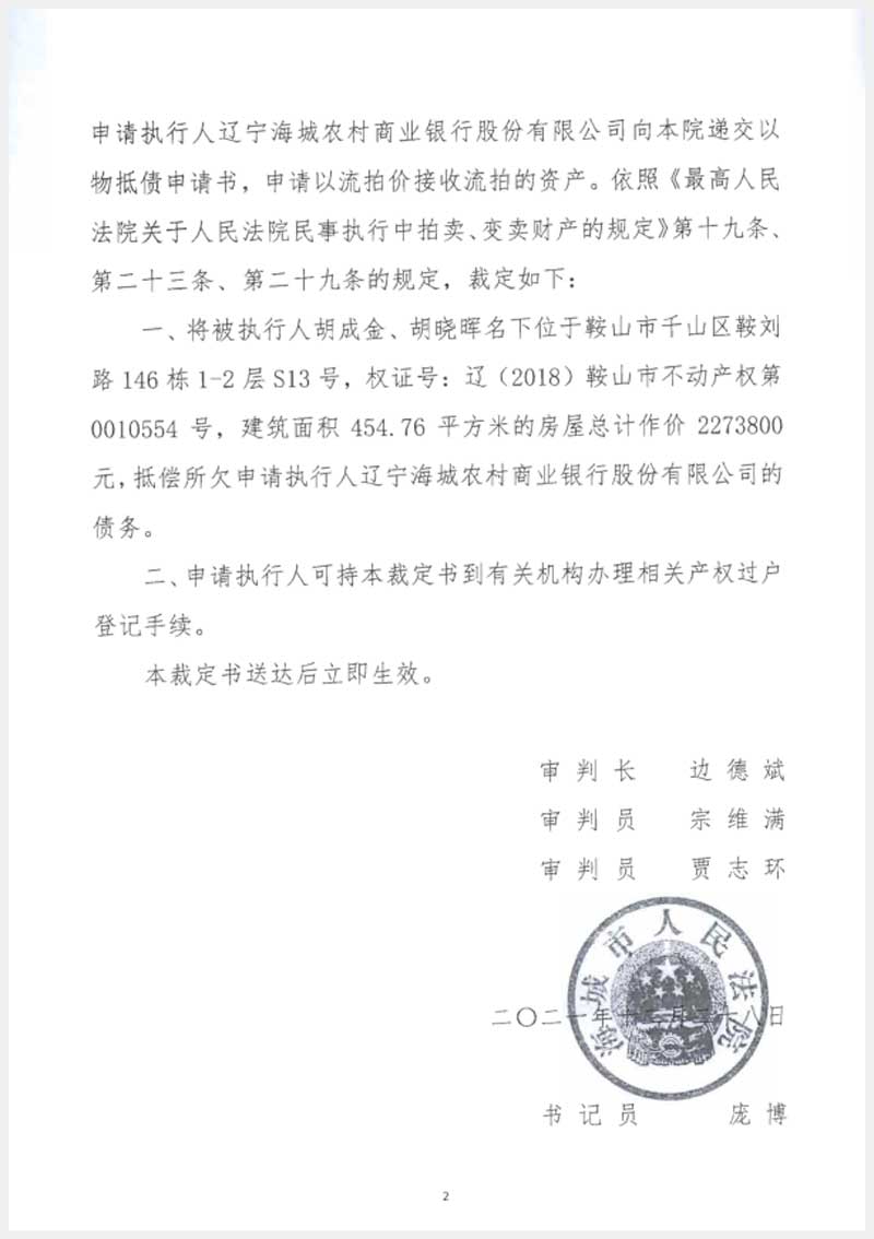 地址:鞍山市千山區(qū)鞍劉路148棟 標(biāo)的號:243