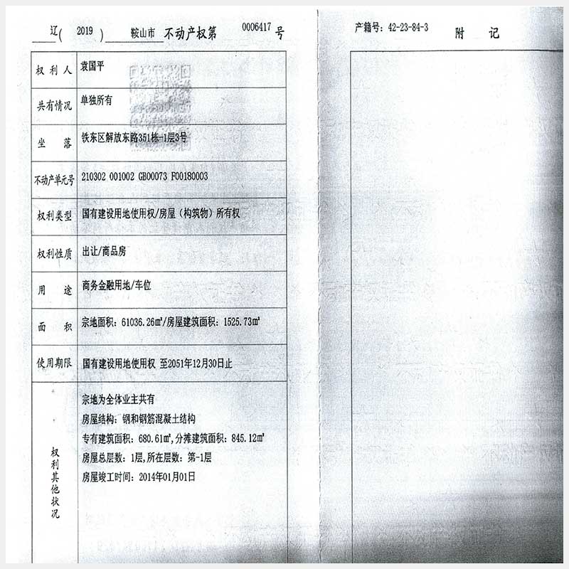 名稱:鞍山市鐵東區(qū)解放東路351棟-1層3號(hào)、9號(hào)車位 面積:3號(hào):1525.73㎡;9號(hào):1597.73㎡ 瀏覽次數(shù):267