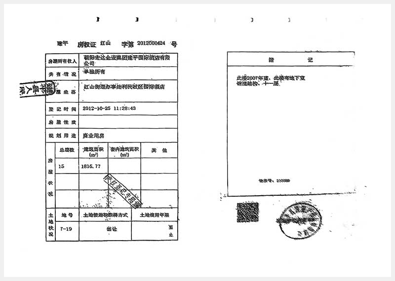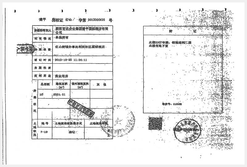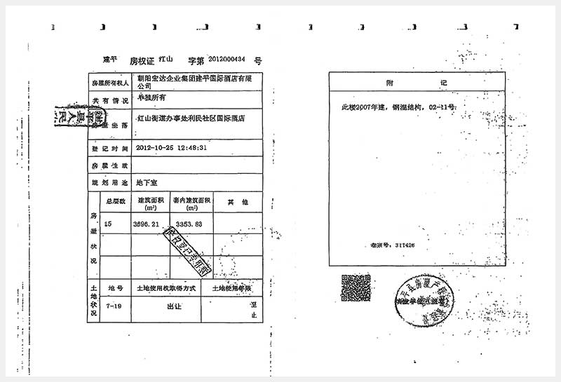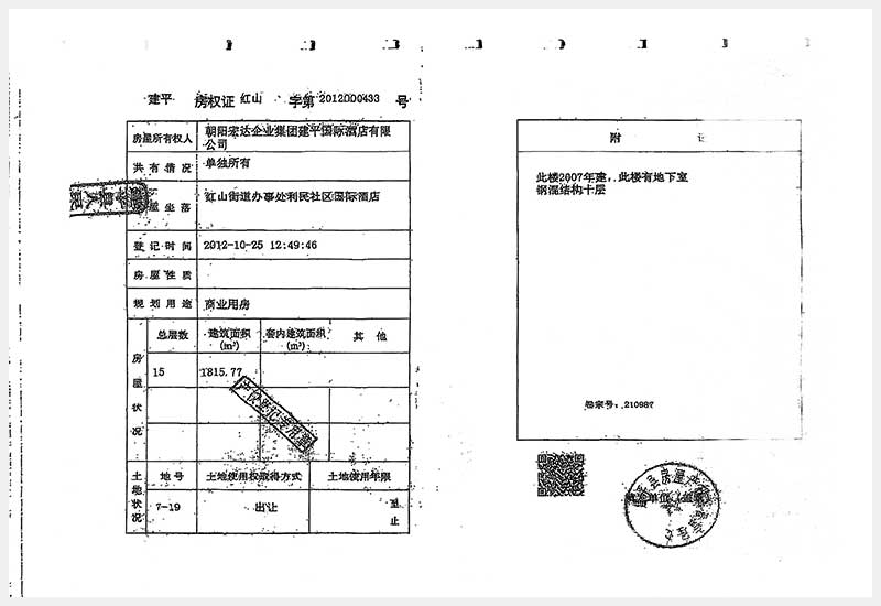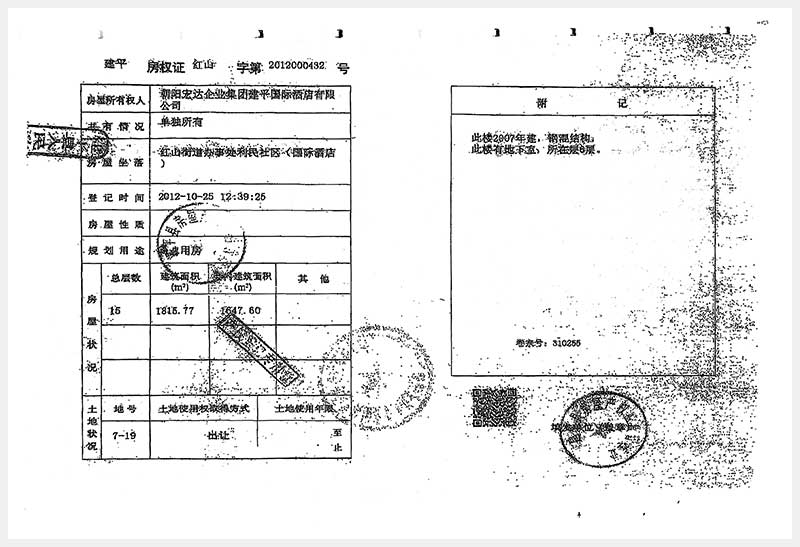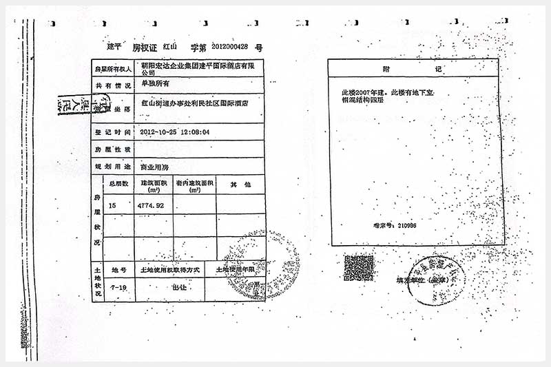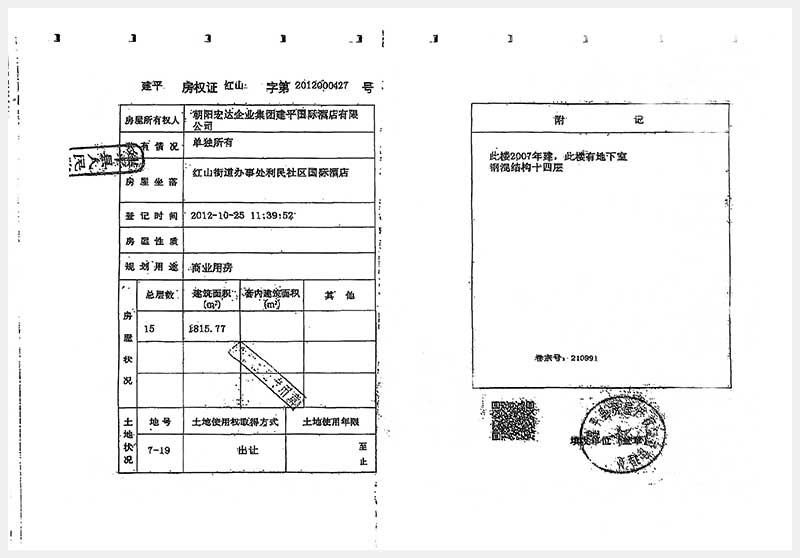 274號 朝陽市建平縣紅山街道辦事處利民社區(qū)國際酒店房產(chǎn)及土地使用權(quán)