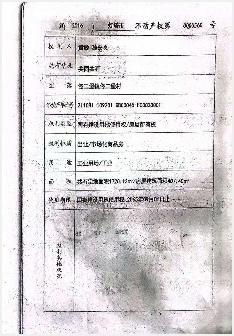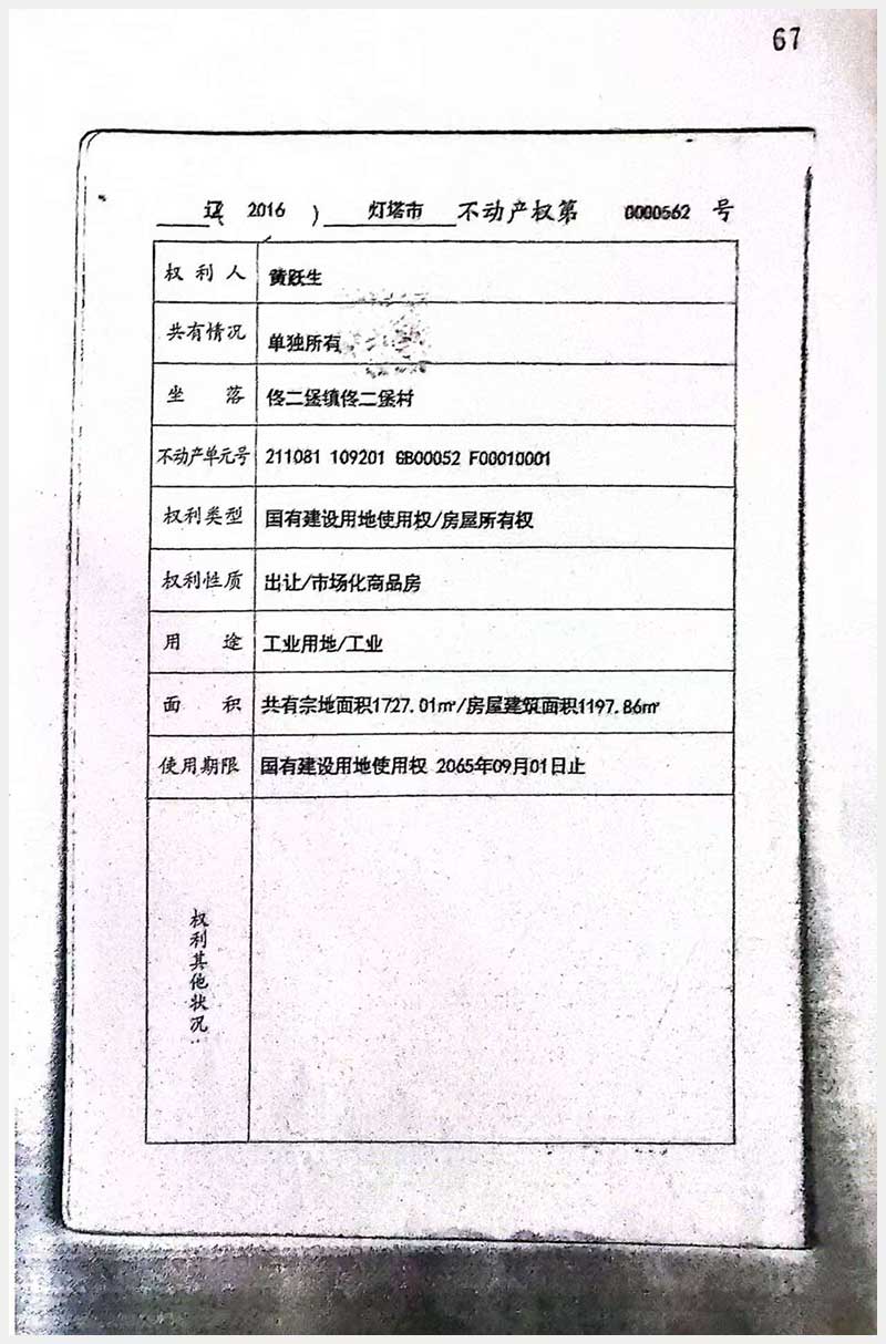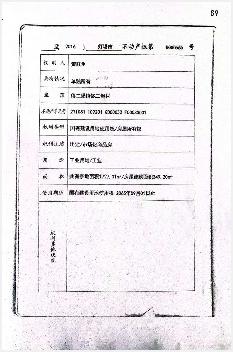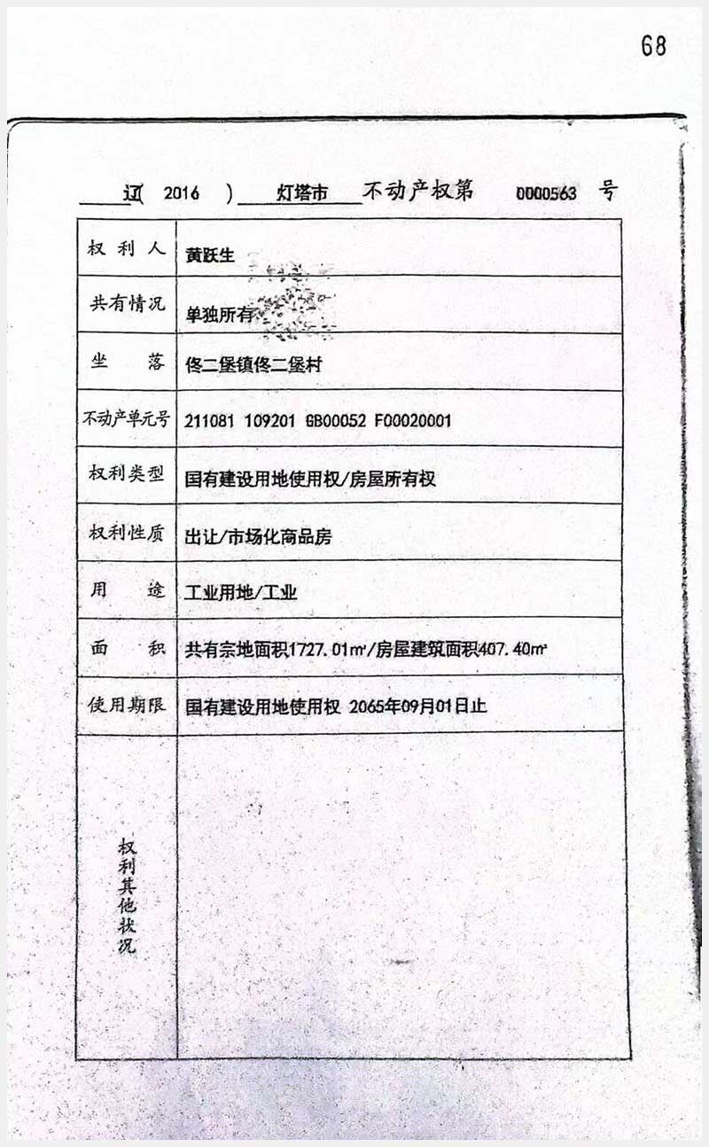 71號 燈塔市佟二堡鎮(zhèn)佟二堡村房產(chǎn)及土地使用權(quán)