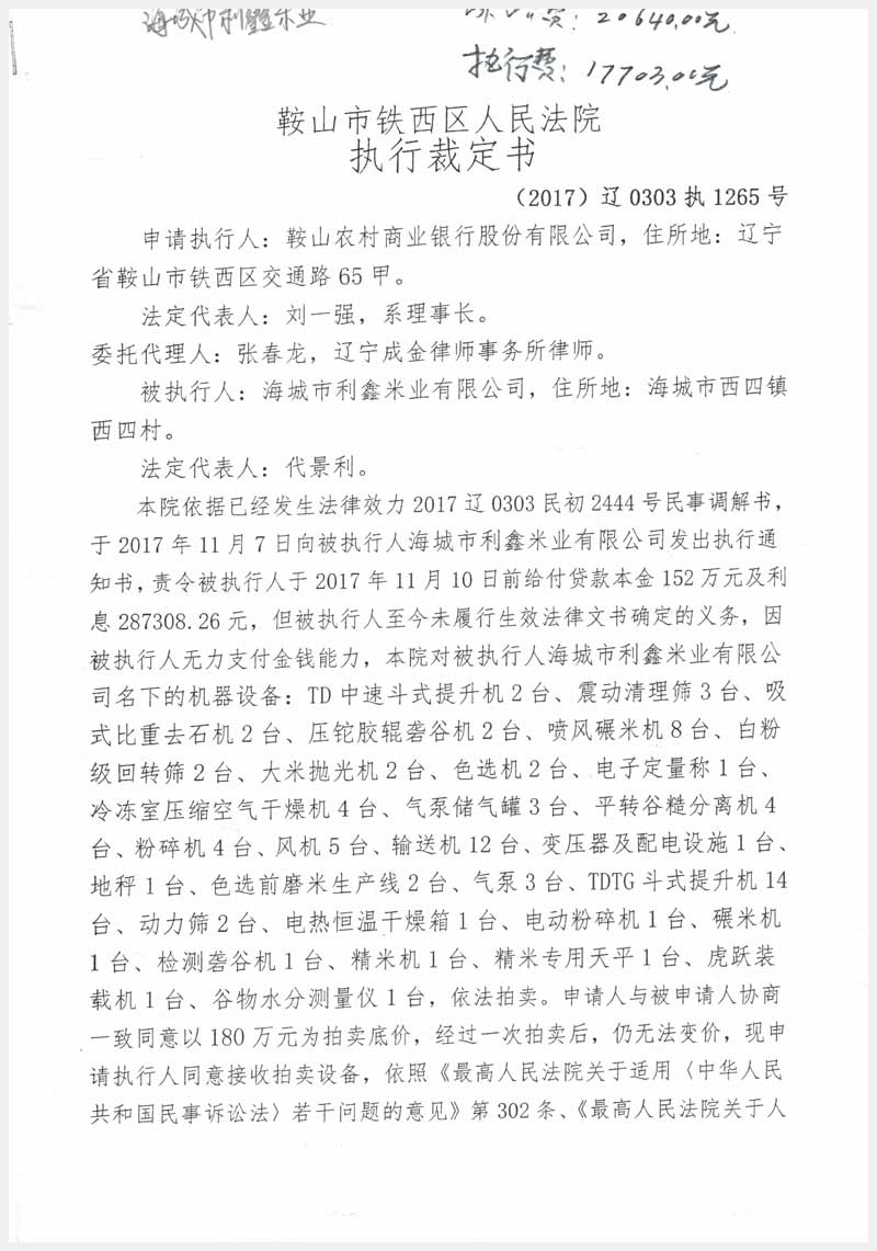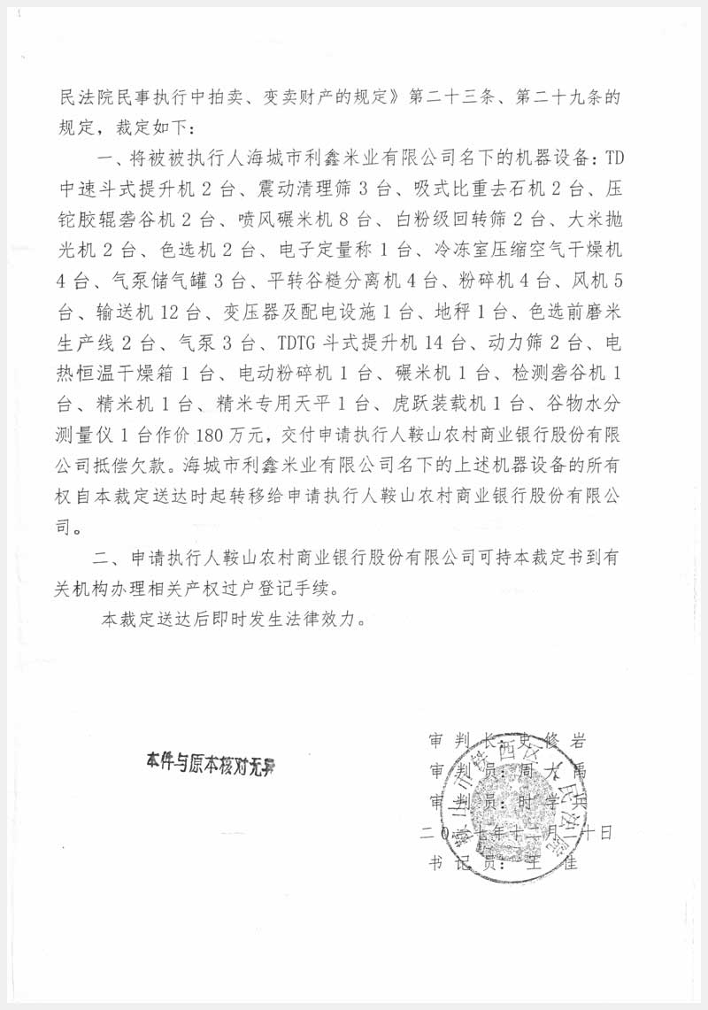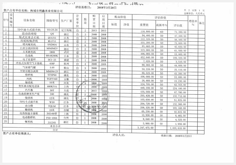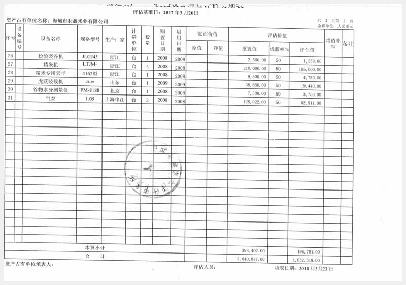 42號(hào) 海城市利鑫米業(yè)有限公司所有的機(jī)器設(shè)備