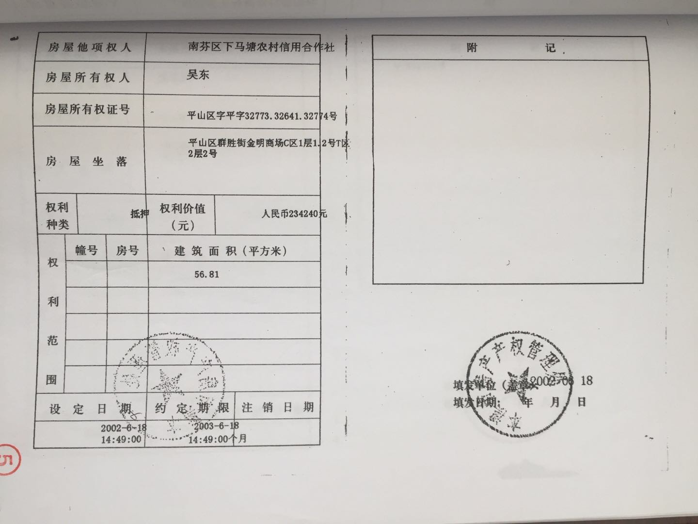 地址:平山區(qū)群勝街金明商場 標(biāo)的號:25