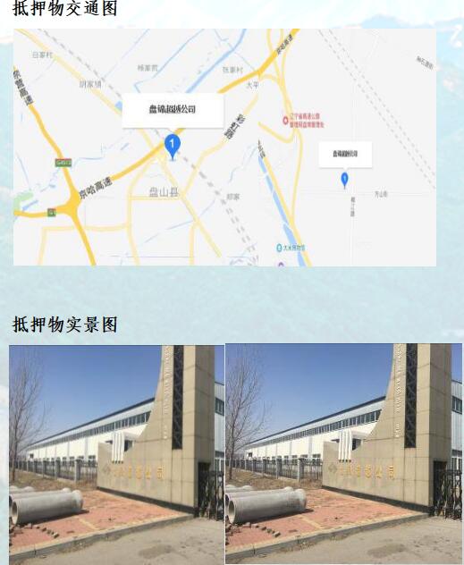 抵押物位于盤錦市雙臺(tái)子區(qū)盤山縣,交通便利。抵押房產(chǎn)位于抵押土地之上,抵押房產(chǎn)的狀態(tài)較好,從外部觀察為九成新,用途為辦公樓、倉(cāng)儲(chǔ)等。抵押土地為國(guó)有出讓工業(yè)用地,狀態(tài)較好,中間部份大面積空置,地型寬闊規(guī)整,升值空間較大。