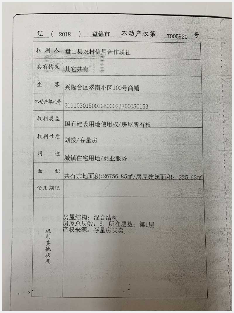 地址:盤錦興隆臺區(qū)翠南小區(qū) 標的號:26