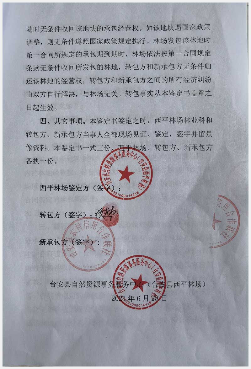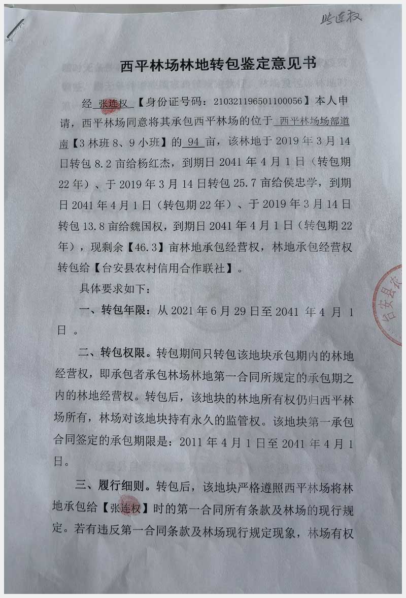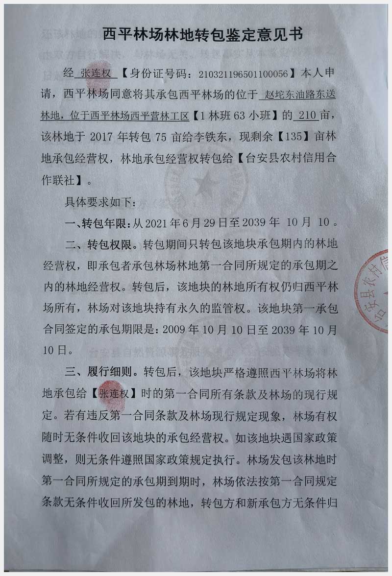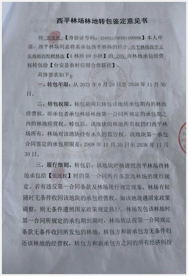 124號(hào) 臺(tái)安縣西平林場(chǎng)林地承包經(jīng)營權(quán)及西平村土地承包經(jīng)營權(quán)