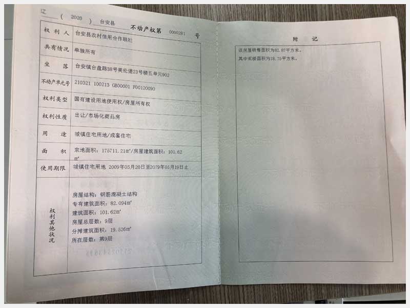 地址:臺(tái)安鎮(zhèn)臺(tái)盤(pán)路38號(hào)美倫堡 標(biāo)的號(hào):141