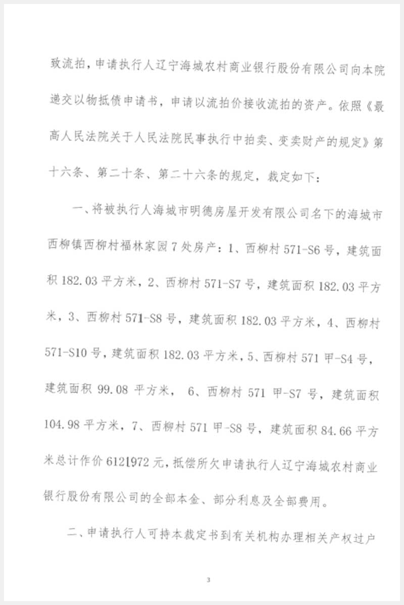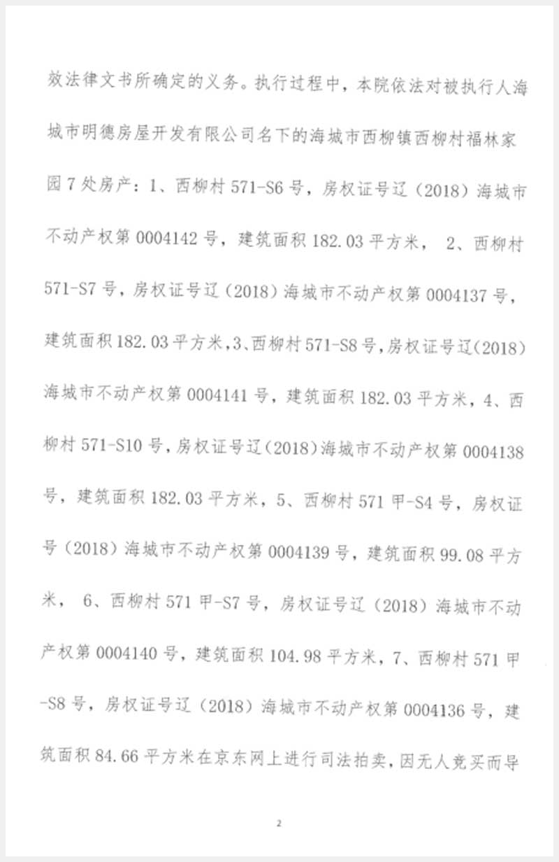 名稱:海城市西柳鎮(zhèn)西柳村福臨家園7處房產(chǎn) 面積:182.03㎡;84.66㎡;182.03㎡;104.98㎡;182.03㎡;182.03㎡;182.03㎡ 瀏覽次數(shù):1015