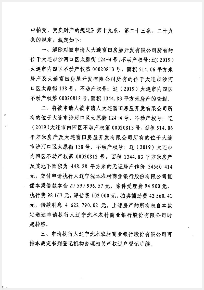 171號(hào) 大連市沙河口區(qū)太原街124號(hào)、138號(hào)房產(chǎn)