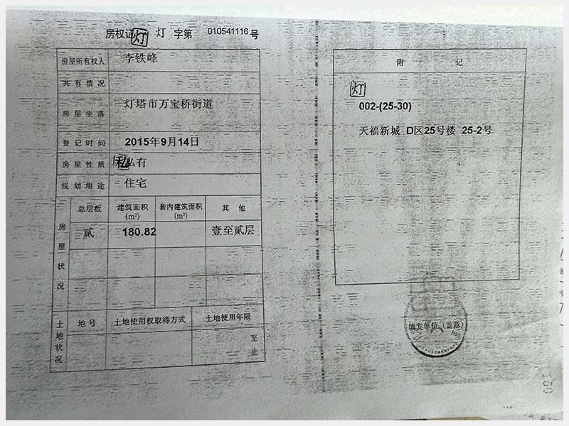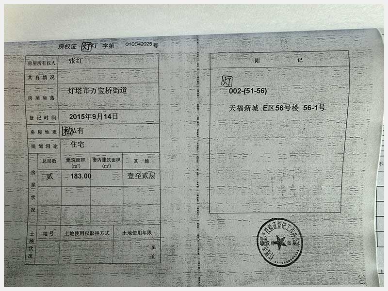 名稱:燈塔市萬寶橋街道天福新城D區(qū)25號樓25-2號房產(chǎn) 面積:180.82㎡ 瀏覽次數(shù):94