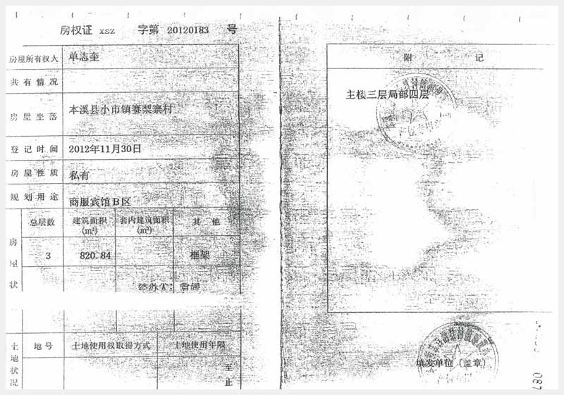 名稱(chēng):本溪滿(mǎn)族自治縣太陽(yáng)島酒店房產(chǎn)、土地及附屬設(shè)施 面積:房產(chǎn):2508.02㎡、土地:5988㎡ 瀏覽次數(shù):2012