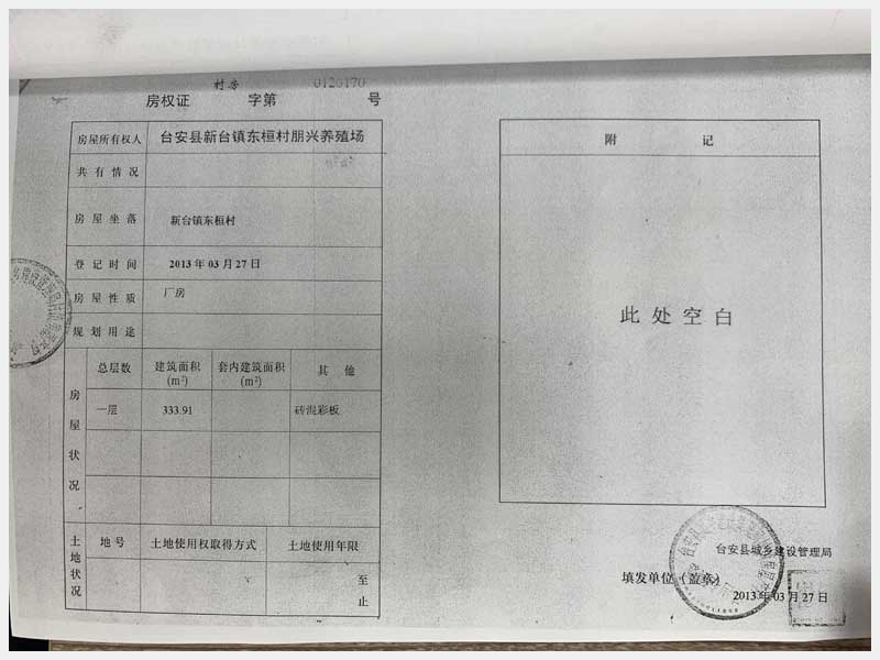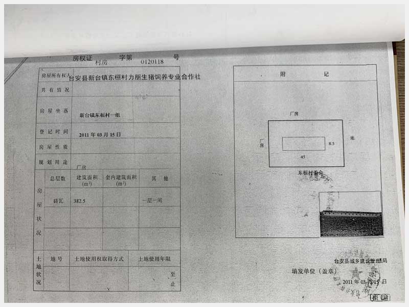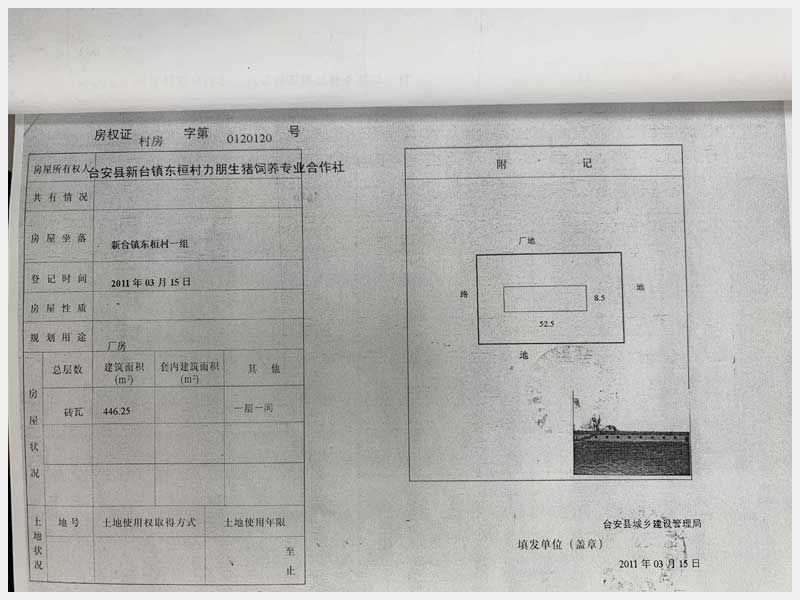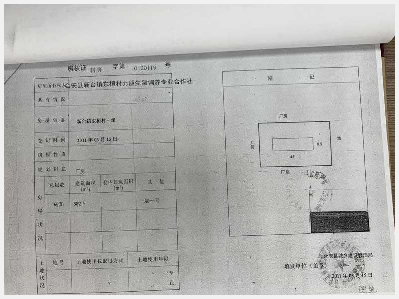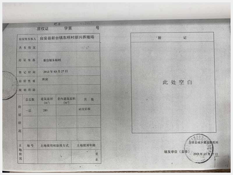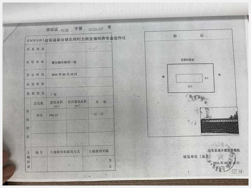 8號(hào) 新臺(tái)鎮(zhèn)東桓村朋興養(yǎng)殖場15處房產(chǎn)及土地