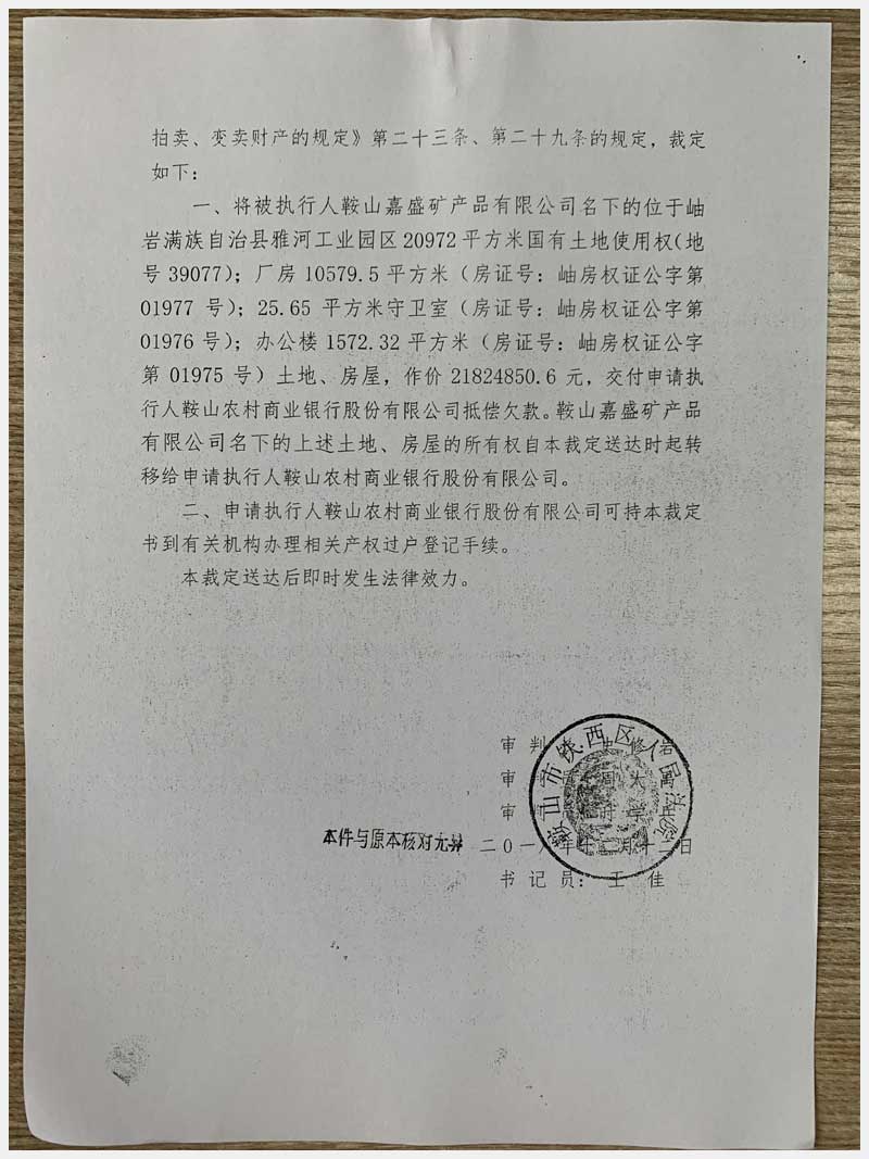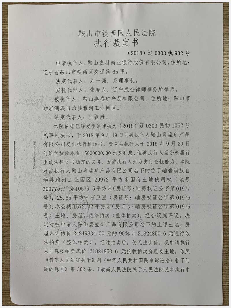 地址:鞍山市岫巖雅河工業(yè)園區(qū) 標的號:53