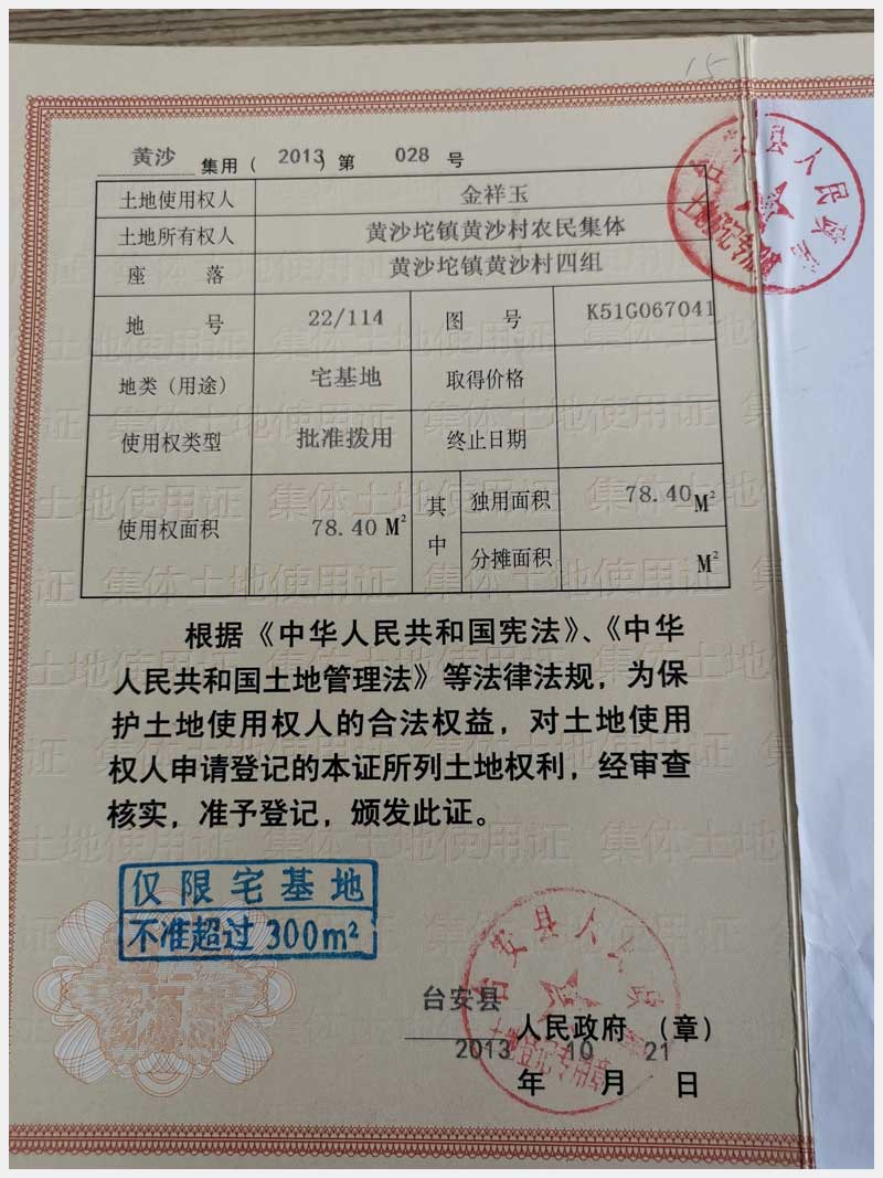 名稱:臺安縣黃沙坨鎮(zhèn)黃沙坨村四組房產(chǎn) 面積:209.16㎡ 瀏覽次數(shù):1085